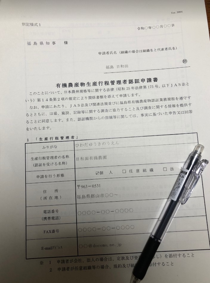 そして、その後も、申請書の作成と提出(必要に応じて圃場視察あり)を行い、赤ペンが入ってそれを修正して…と。 このやり取りを行って受理される事で認定されます。