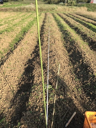 - 先日同様に、株間20cm、条間20cm、深さ約10cmで植え付け