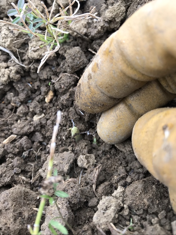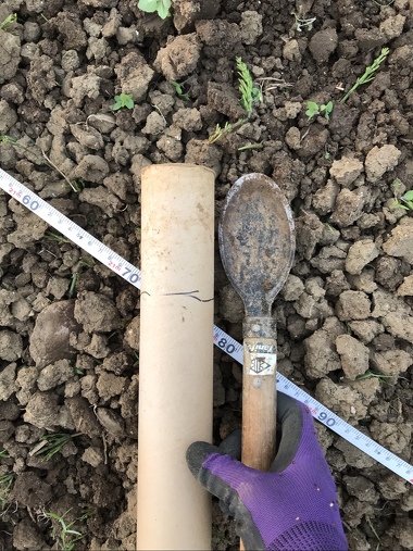 - しばらくそのままにしておいた畝の方が団粒構造もしっかりしていて、粘土質のゴロゴロとした塊も少ない印象