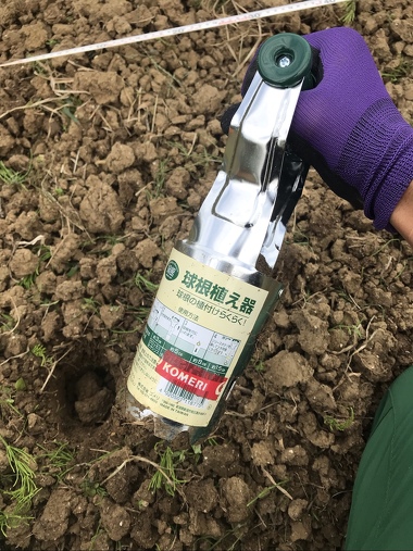 - 初めは草削りで穴を、その後、移植ごてや、寒冷紗などのロールで穴を開けたが、土がすぐ埋まるので効率が悪かった
