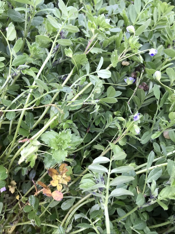 周囲および畝上のマメ科の野草に黒いアブラムシがかなり寄生していた